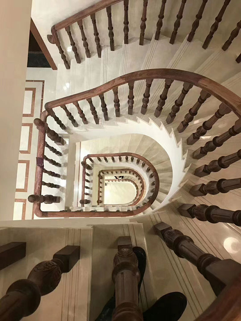 業(yè)主的旋轉(zhuǎn)樓梯采用鋼結(jié)構(gòu)的主框架,螺旋向上,然后鋪設(shè)石材,安裝燈帶和玻璃護(hù)欄。完成效果從樓上到樓下都很好,可以提高整個(gè)房子的先進(jìn)感。接下來(lái),讓我們來(lái)看看旋轉(zhuǎn)樓梯的細(xì)節(jié):